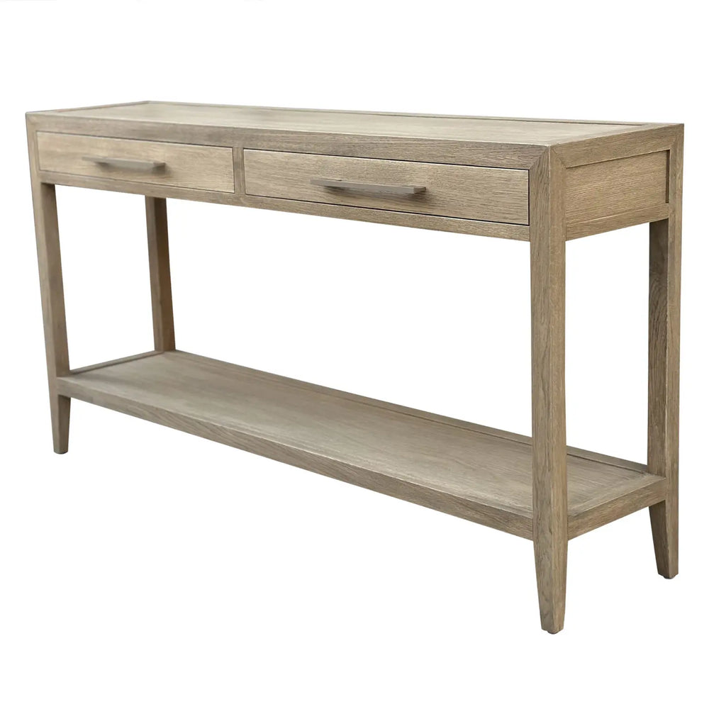 The perfect entry or hallway statement — our Hamptons console tables combine practical storage with coastal elegance. Finished in weathered oak and white, they bring balance and symmetry to your home.