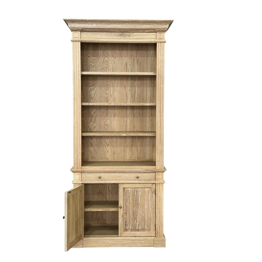 French One Bay Library - Whitewash Oak
