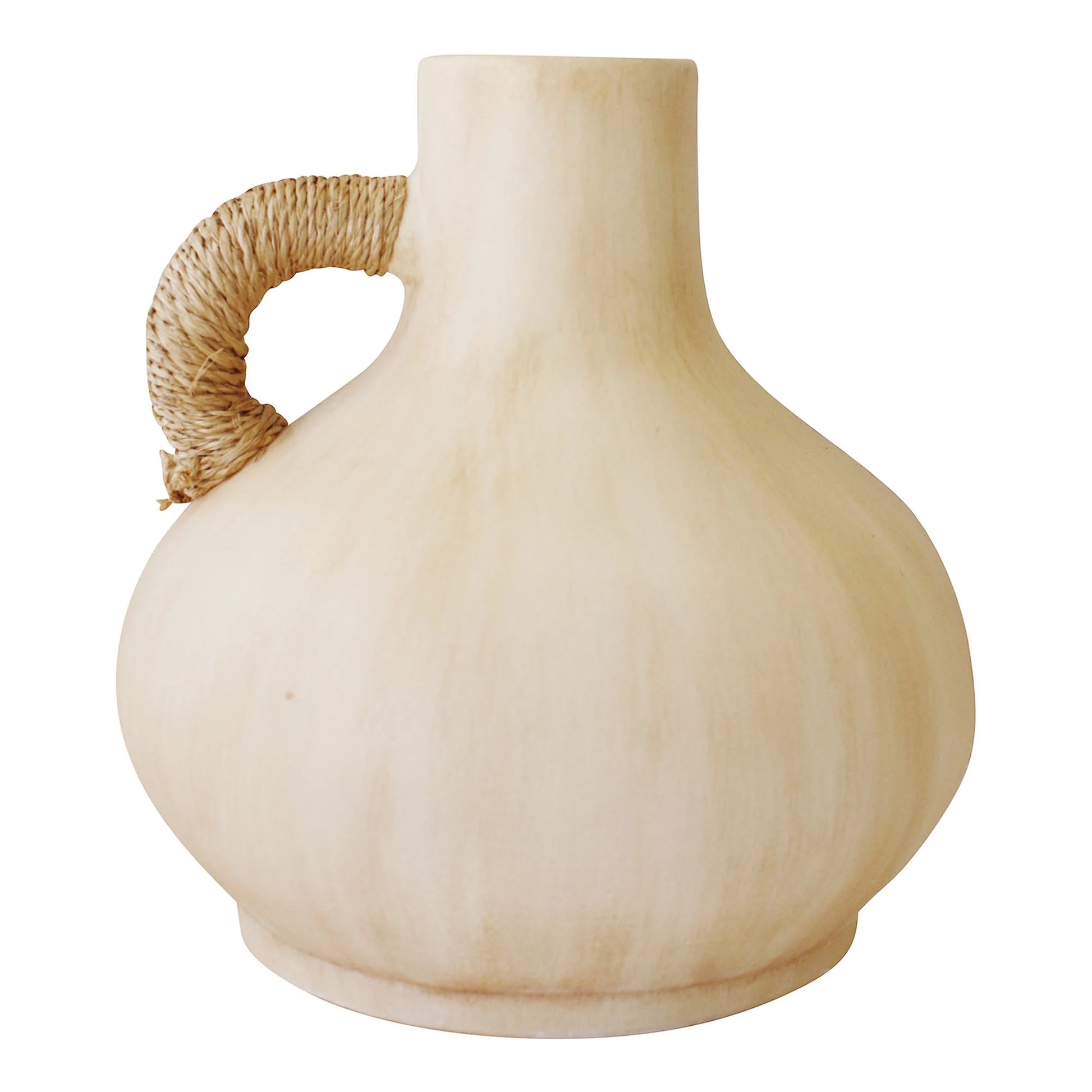 Elevate your home décor with our Light Teracotta Jug/Vase Small. This vase is hand-potted and glazed, giving it a unique and beautiful finish. The jute wrapped handle adds a touch of rustic charm to this handmade piece. Add a touch of artistry to any room with this stunning vase. Taller size available too.
