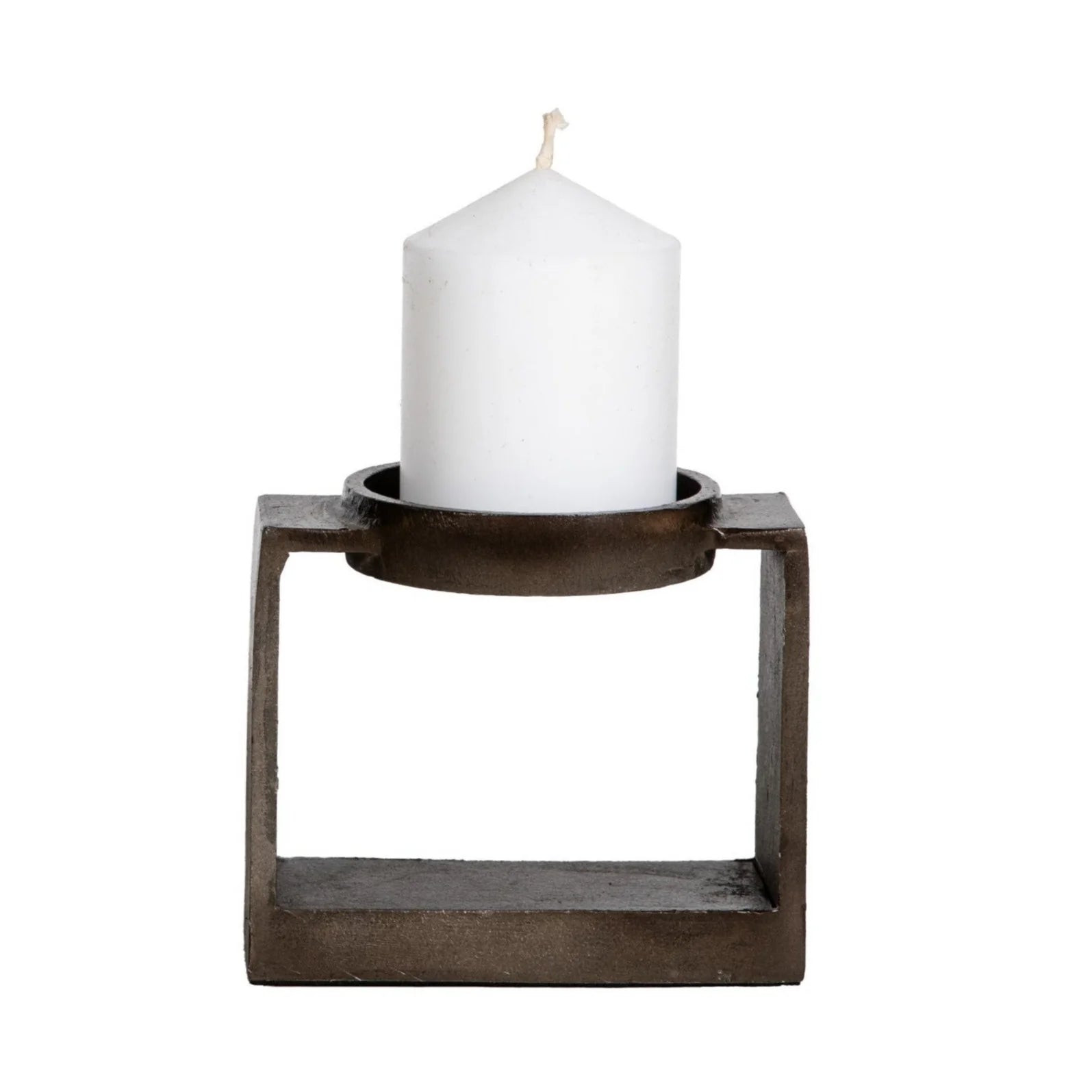 Elevate your living space with the Stirrup Candle Holder Medium. Crafted from durable cast aluminium and finished in a rich brown antique tone, this candle stand offers timeless charm and sturdy support. Available in two sizes, it brings versatile elegance and a warm ambiance to any room. Perfect for creating a cozy, inviting atmosphere that complements both classic and modern decor.