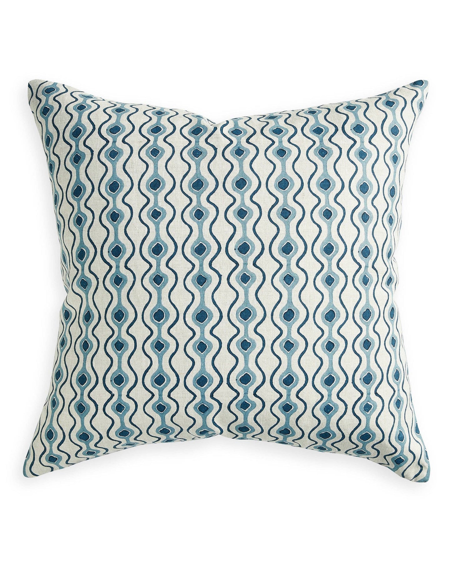 The Toro Azure Pillowcase features striking hand-painted organic lines that stand out vividly against a linen backdrop, adding a bold graphic touch to any space. Expertly hand block printed by skilled Indian artisans, this cushion combines craftsmanship with style. It includes a knife edge finish, is made from 100% linen, and comes with a feather insert for added comfort and luxury.